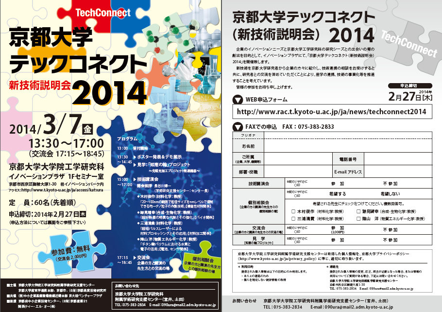 京都大学テックコネクト新技術説明会2014 リーフレットはこちらからダウンロードできます